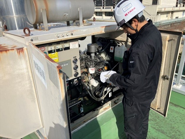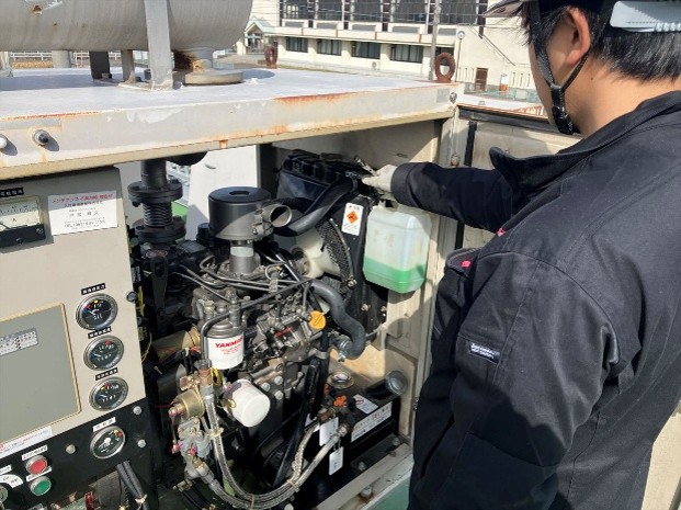 今回、非常用発電機の消防点検を実施いたしました。