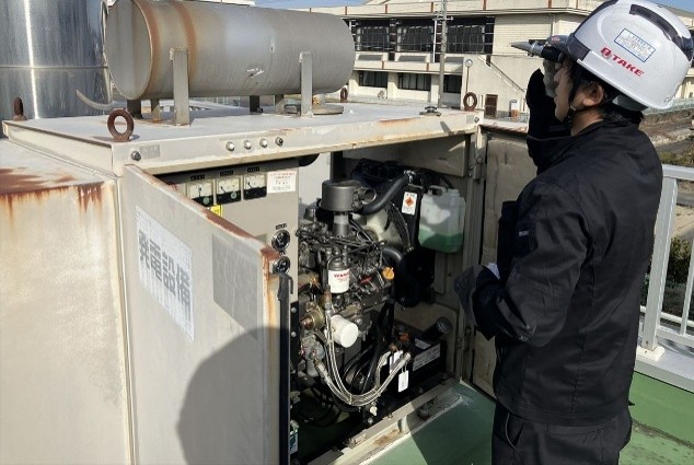 愛西市内の公共施設にて、非常用発電機の消防点検を実施いたしました。